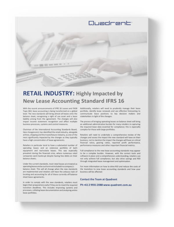 The new accounting standards will bring almost all leases onto the balance sheet, recognising a right of use asset and a lease liability arising from the agreement. Retailers in particular tend to have a substantial number of operating leases and will need to be included in a company's balance sheet. This PDF will provide you with information about the implications of the IFRS 16 / AASB 16 changes for the retail industry. It will answer all your questions related to:
